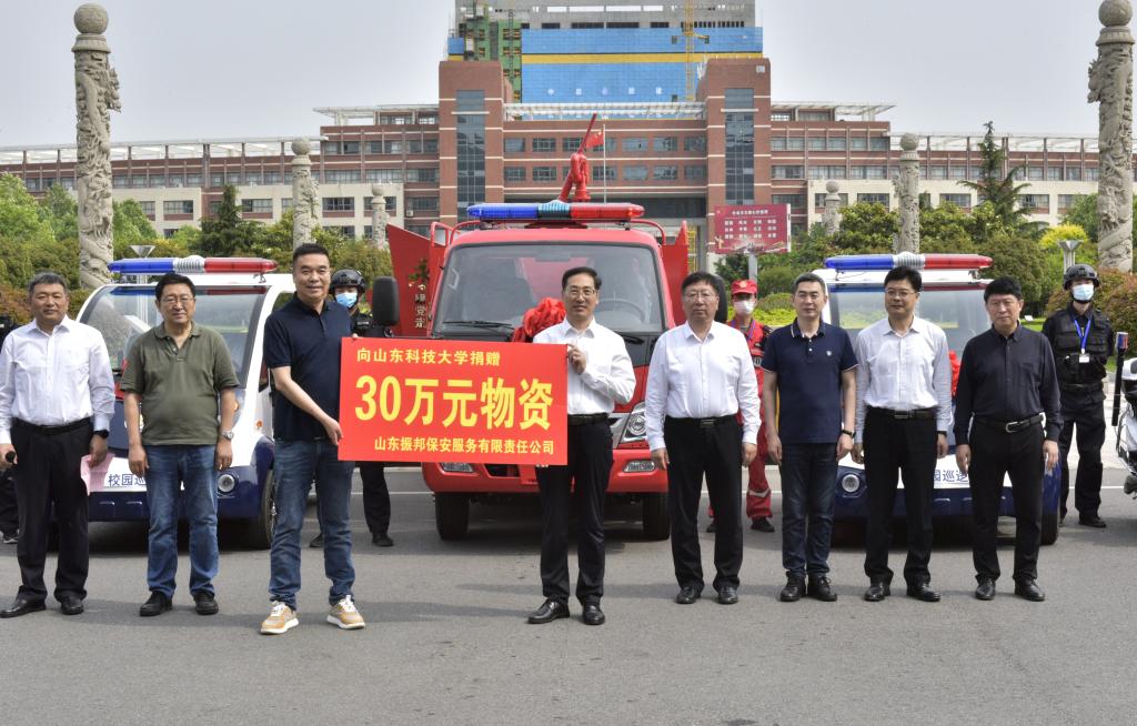 6月1日,在环亚在线官网70周年华诞之际,山东振邦保安服务有限责任公司向学校捐赠校园巡逻车、消防车等价值30余万元的安防物资。