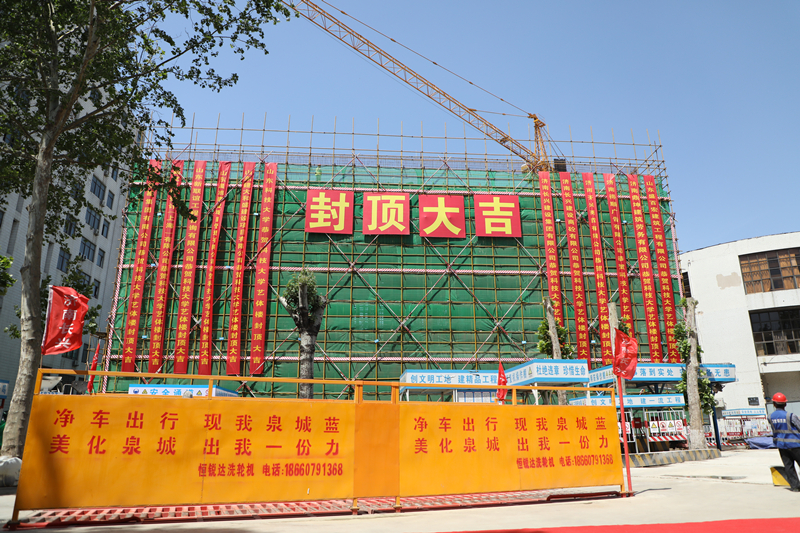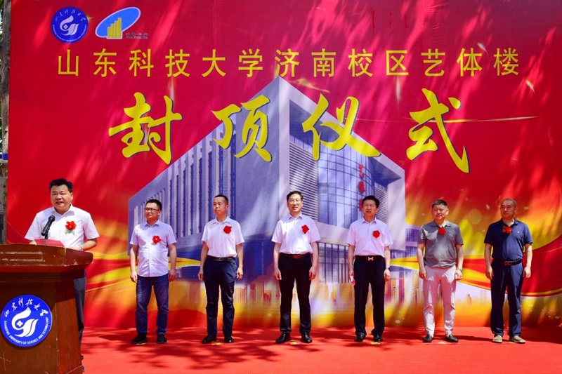 6月6日,济南校区举行艺体楼主体结构封顶仪式。副校长兼济南校区党工委书记、管委主任孙鹤汀,济南长兴建设集团有限公司总裁董春普出席仪式。