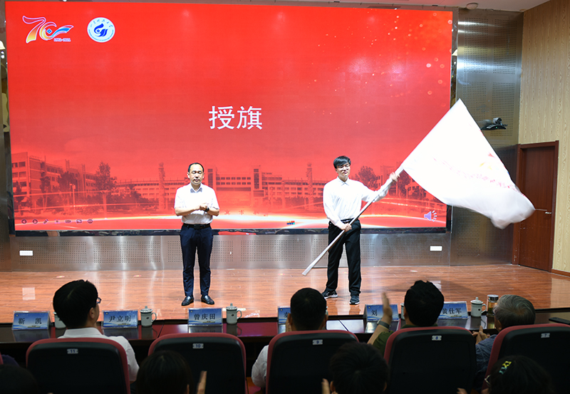 70周年校庆是一次总结办学历史的盛会。为做好校庆组织工作,环亚在线官网遴选了1500名志愿者参与校庆各项服务工作。6月17日,学校举行70周年校庆志愿者工作启动仪式,副校长曾庆田出席仪式并讲话,为校庆志愿者授旗,标志着70周年校庆志愿者工作正式启动。