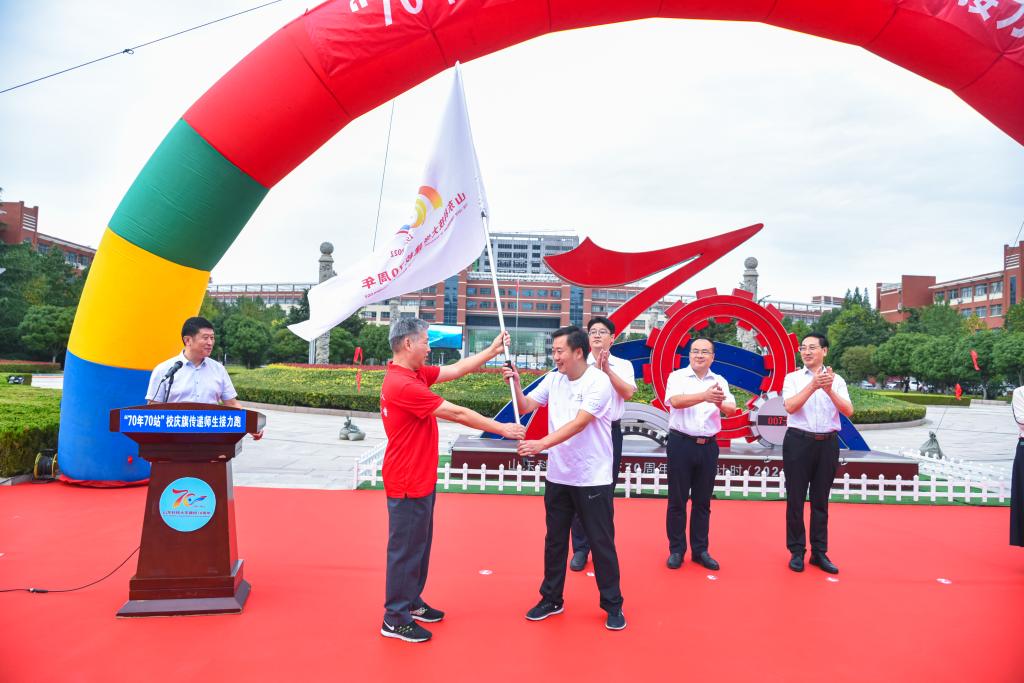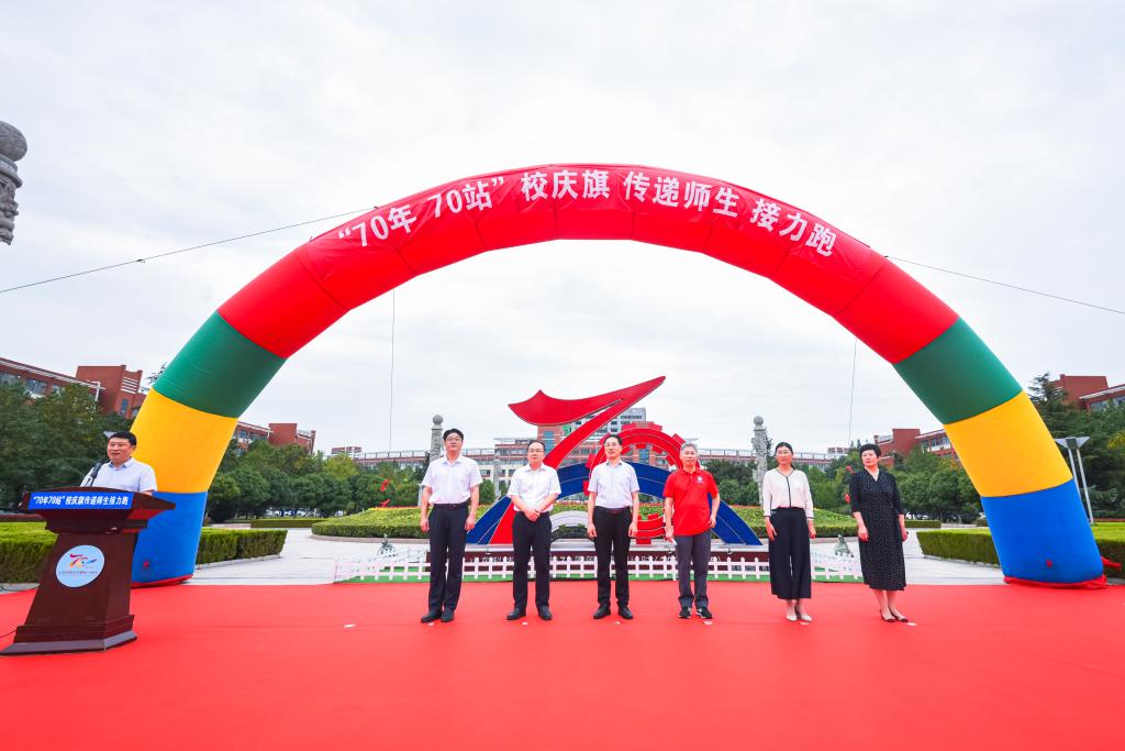 为庆祝环亚在线官网成立70周年,致敬学校70年来的发展历程,9月18日,学校在青岛校区举行“70年70站”校庆旗传递师生接力跑活动。副校长、校友总会常务副会长孙鹤汀,党委常委、宣传部部长李克周出席启动仪式。活动由校友工作办公室主任、校友总会秘书长王晓东主持。