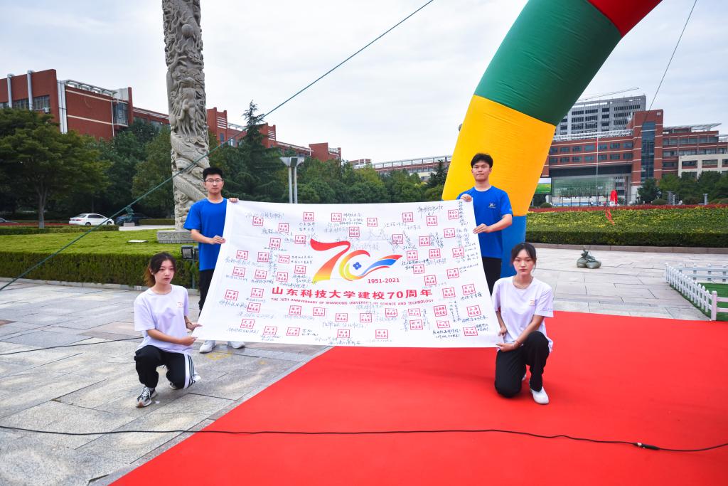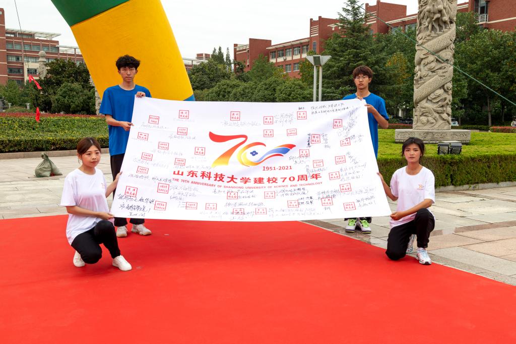 在接力跑活动中,各学院精心准备,设置特色活动点,表达对学校的深情和祝福。其中,能源学院邀请宋振骐院士观看校旗传递,与同学们进行亲切交流,拉近线上线下校友的距离,提升校庆氛围;经管学院提前设计,在学校钟楼广场、砚湖前摆放了“S K D 70”字样,30余名学子站成一列齐声高喊“祝山科大70周岁生日快乐!在美丽的砚湖边,组织部分同学合唱山科大校歌,拉响小提琴,用歌唱的形式共同祝愿学校扬帆起航再出发,再续辉煌;自动化学院每传递一棒,学院沿途引导员便紧跟着融入到接力跑大部队中,从第一棒的30余人最后汇聚成了近150人的接力跑团,表达学院对科大七十华诞的祝福;艺术学院组成了校歌团、萨克斯团等,掀起了同唱校歌、祝福校庆的高潮,校歌的嘹亮和对校庆旗的欢呼表达了对学校生日的祝福和参与学校发展的热情;国际交流学院来自不同国家的留学生们喊着“我爱山科大 走向国际化 ”等响亮口号,为科大七十周年校庆添加了独特的国际色彩,增加了学校的人文气息,为科大的七十岁生日送上祝福。