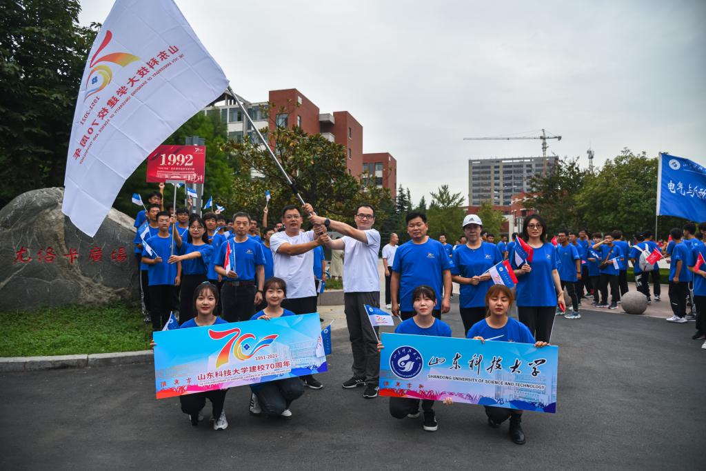 校庆旗经过21个学院领导班子成员、教师代表、学生代表接力传递,由泰山广场出发,途经学校南门、墨水河畔、笔架山、山海花园、科技园、砚湖,风雨操场、学校东门、励志坊等70站学校标志性建筑和地标,历经17公里的路程,最终回到泰山广场,活动圆满收官。