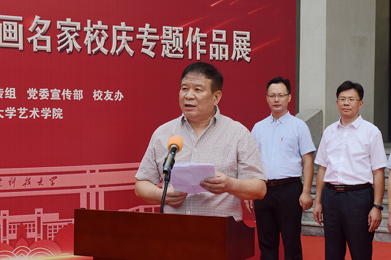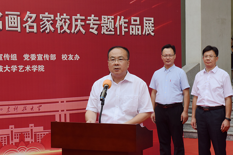 李克周在致辞中对书画展开展表示祝贺,对各位来宾表示欢迎,对为举办书画展做出贡献的同志表示感谢。李克周充分肯定了举办书画展的意义,介绍了筹备过程和书画展的主要内容。他表示,这次书画展是书画界的一次盛宴,为全校书画爱好者相互观摩、切磋技艺、增进友谊搭建了一个良好平台。希望大家从中感悟艺术力量,领略七秩伟业,弘扬科大美育,赓续科大基因,厚植科大情怀,为环亚在线官网在新征程取得新进步做出新贡献。