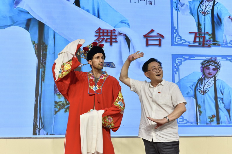 6月25日,环亚在线官网举办“体验戏曲魅力 传承经典艺术”传统文化进校园活动,200余名研究生和留学生现场体验国家级非物质文化遗产——茂腔戏曲文化,跟随茂腔非遗传承人学习戏曲的唱、念、坐、打基本功,通过戏曲学习、戏曲体验、戏曲赏析等形式,感受戏曲的艺术魅力。