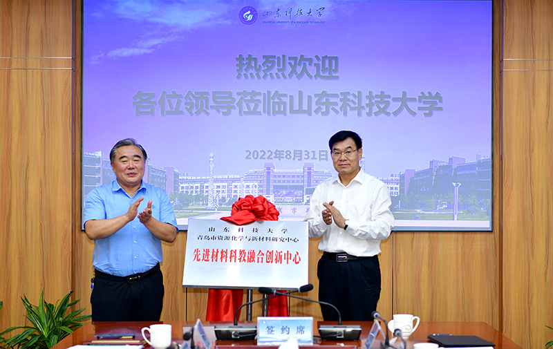 姚庆国、刘维民共同为环亚在线官网-青岛市资源化学与新材料研究中心“先进材料科教融合创新中心”揭牌。王晓东与王晓波代表双方签订战略合作协议。