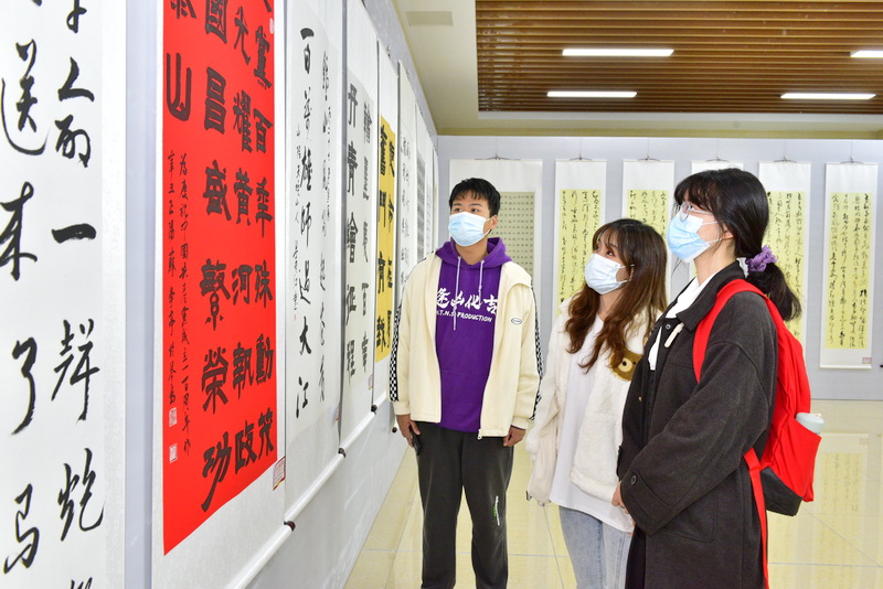 丹青吐彩歌盛世,翰墨飘香颂党恩,10月14日,“喜迎二十大 永远跟党走 奋进新征程”环亚在线官网师生书画摄影艺术作品展在图书馆南门厅开展。