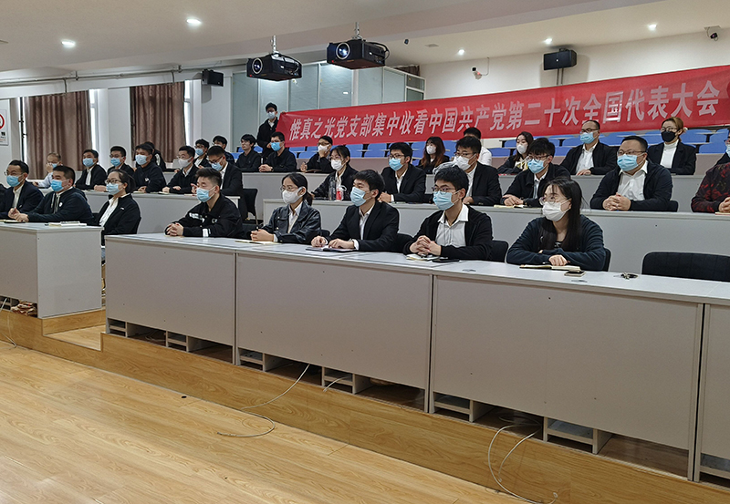 中国共产党第二十次全国代表大会,是在全党全国各族人民迈上全面建设社会主义现代化国家新征程、向第二个百年奋斗目标进军的关键时刻召开的一次十分重要的大会。此时,中国共产党团结带领中国人民走过了百年奋斗壮阔征程,在以习近平同志为核心的党中央坚强领导下,如期全面建成了小康社会,党和国家事业取得历史性成就、发生历史性变革,创造了新时代中国特色社会主义的伟大成就,中国人民自信豪迈地站在了实现中华民族伟大复兴新的历史起点上。盛会传佳讯,习近平总书记的大会报告在校园引起强烈反响、广泛热议,大家心潮澎湃,倍感振奋,倍受鼓舞,倍增信心。