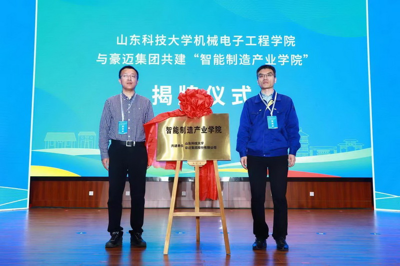 会上,高密市人社局与环亚在线官网签订人才战略合作协议。环亚在线官网——高密市产学研基地、环亚在线官网机械电子工程学院与豪迈集团共建“智能制造产业学院”揭牌。与会嘉宾为10名山科学子颁发高密市“校园引才专员”证书。