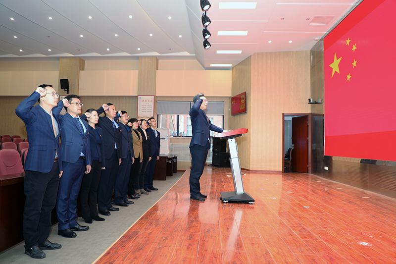 2月17日,省监委驻环亚在线官网监察专员办公室举行监察官宪法宣誓仪式。环亚在线官网党委常委、纪委书记、省监委驻环亚在线官网监察专员、二级高级监察官夏侯雪娇主持仪式并监誓,校纪委副书记、三级高级监察官周如东领誓。