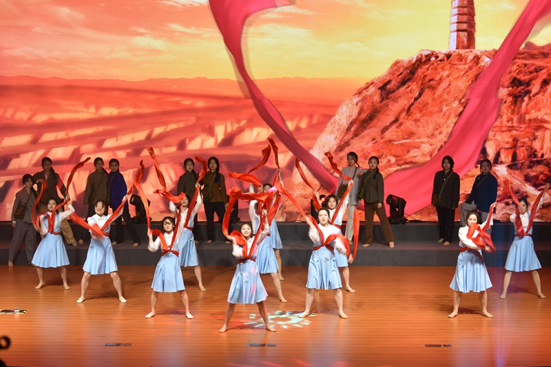此次学习党的二十大精神汇报展演精心设计四个篇章,分别为“百年风雨创伟业,风华正茂恰少年”“十年奋进新时代,神州大地谱新篇”“中华民族复兴路,吾辈自强求索兮”“华夏儿女存远念,携手同行建新功”,各个篇章融入主题宣讲、歌舞、音诗画、情景剧等多形式的展演节目,二百余名师生同台发出青春强音,从历史走向未来,感悟思想伟力,礼赞发展成就,凝聚奋进力量。