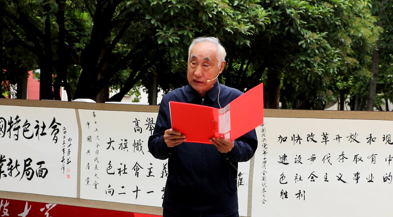 “中国共产党的诞生”“一个政党的纲领就是它的一面旗帜”“国共合作 建立革命统一战线”……活动中,老党员结合书画长卷,对中国共产党第一至第二十次全国代表大会的核心内容、主要议题、取得成效、行动纲领、历史评价等内容进行展示和宣讲,礼赞党的光辉历程,讴歌祖国的繁荣昌盛,追忆革命先烈丰功伟绩,感悟今日幸福来之不易,凝聚奋进力量,争取更大荣光。