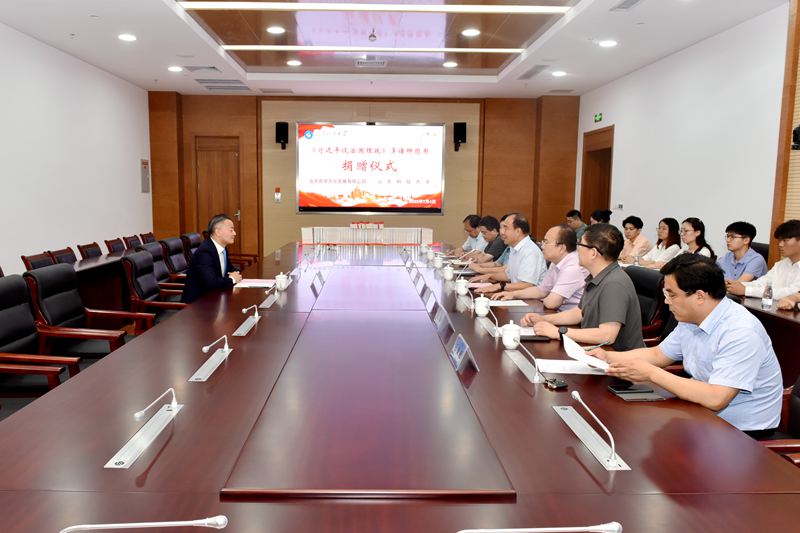 余富文表示,《习近平谈治国理政》一书是国际社会了解当代中国的重要窗口,也是寻找中国问题答案的一把钥匙。北京崇学文化发展有限公司向学校捐赠多语种《习近平谈治国理政》系列图书,旨在促进高校思政工作水平进一步提升,帮助师生更好地学习习近平总书记的信仰追求、为民情怀、科学思维、宽广视野、担当精神、进取精神和求真务实的作风,更好地对外讲好中国故事,传播好中国文化。