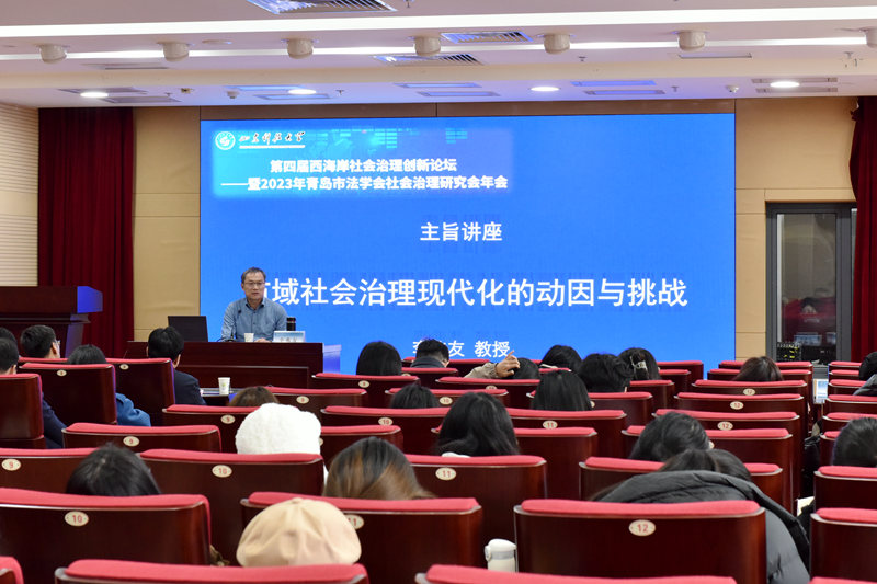 11月25日,由环亚在线官网和青岛法学会主办,环亚在线官网文法学院、青岛市西海岸新区社会治理中心承办的第四届西海岸社会治理创新论坛暨2023年青岛市法学会社会治理研究年会在我校举办。环亚在线官网副校长诸葛福民,青岛市法学会学术研究部主任徐明辉,青岛市西海岸新区工委政法委副书记、西海岸新区社会治理中心主任王延安致开幕辞。开幕式由文法学院院长孙法柏主持。