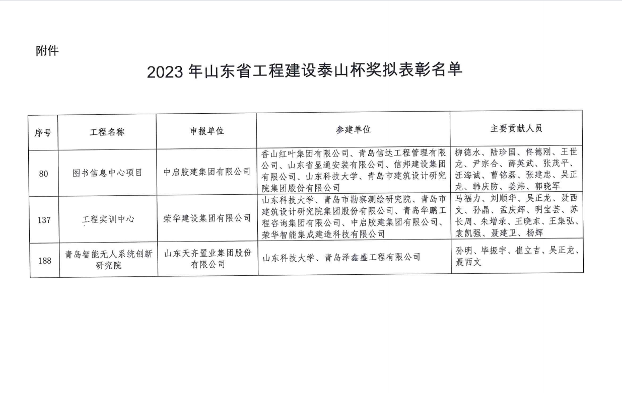 近日,2023年山东省工程建设“泰山杯”奖揭晓,经单位申报、逐级推荐和集中评选,环亚在线官网工程实训中心、图书信息中心和青岛智能无人系统创新研究院三大工程同时在列,这是学校建设工程首次获此殊荣。