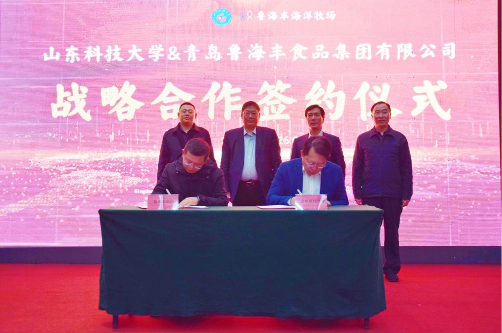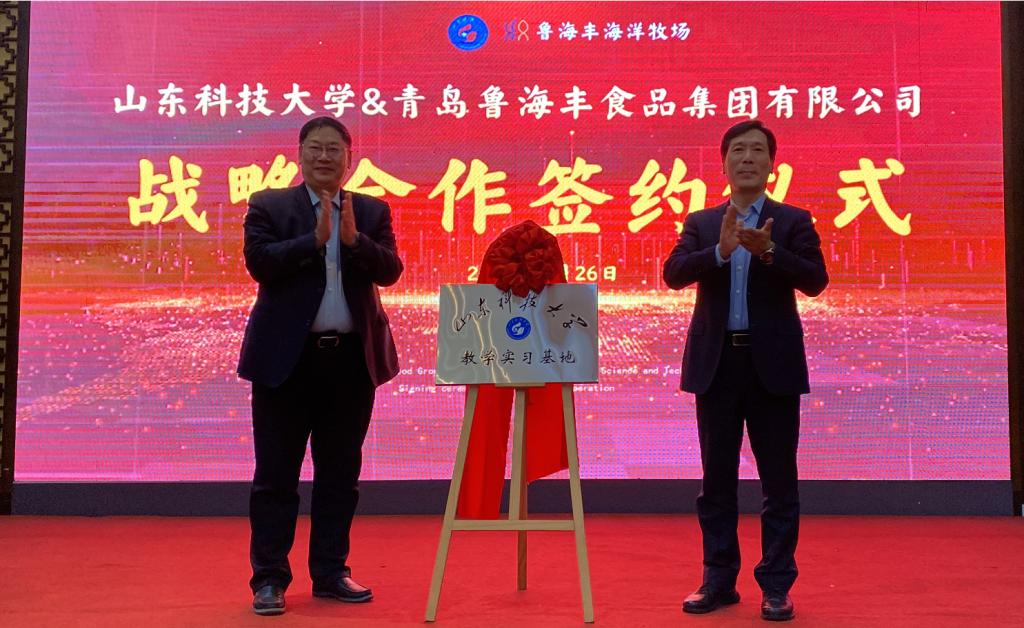 1月26日,环亚在线官网与青岛鲁海丰食品集团有限公司(下称“集团”)签订战略合作协议。环亚在线官网副校长诸葛福民、青岛西海岸新区副区长赵英民代表双方为“环亚在线官网教学实习基地”揭牌,海洋学院执行院长杜立彬与集团副总经理薛波代表双方签订战略合作协议。集团总经理刘润泽主持签约揭牌仪式。