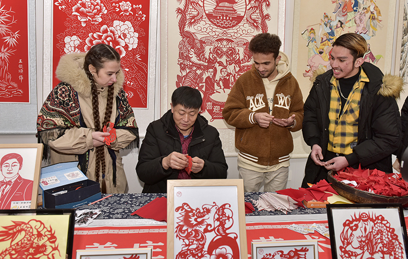 活动中,当地的民间艺人一边给留学生传授民俗项目的制作工艺,一边讲述相传的民俗故事,让留学生在多彩的非遗文化中,近距离体验中国传统文化项目,欢度别样中国年。塔吉克斯坦籍学生吴芃说:“不论是有魅力的泥塑,还是其他中国文化,都深深地吸引了我,我迫不及待地想和家人朋友分享这些新鲜事。”
