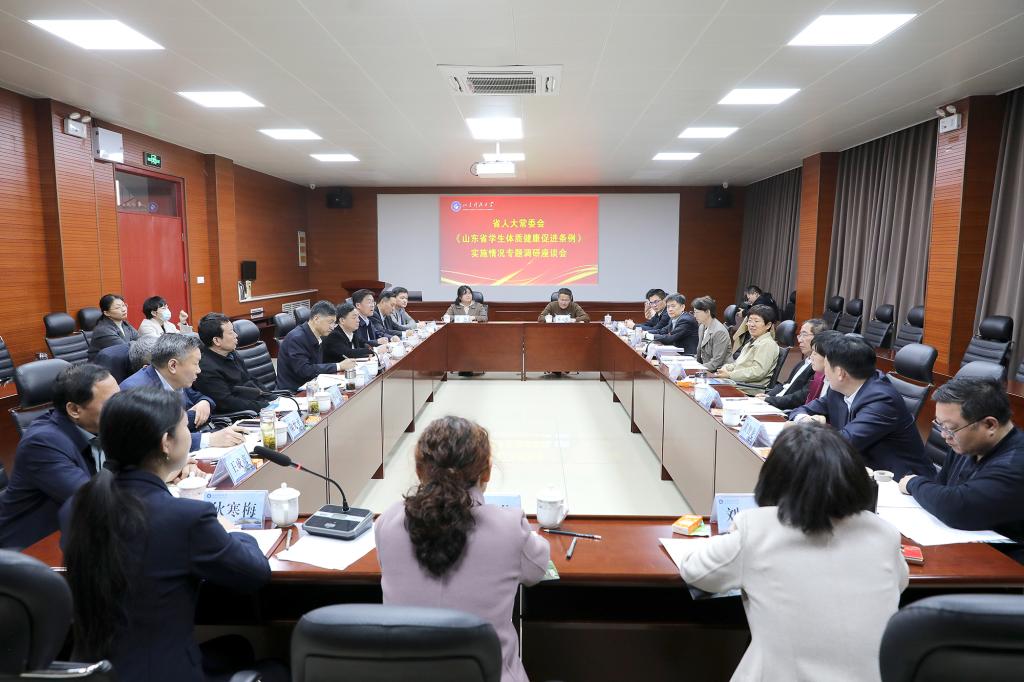 3月28日,山东省人大常委会副主任王随莲带队到泰安校区专题调研《山东省学生体质健康促进条例》(以下简称《条例》)实施情况。校党委常委、副校长兼泰安校区党委书记、管委主任徐方全陪同调研。
