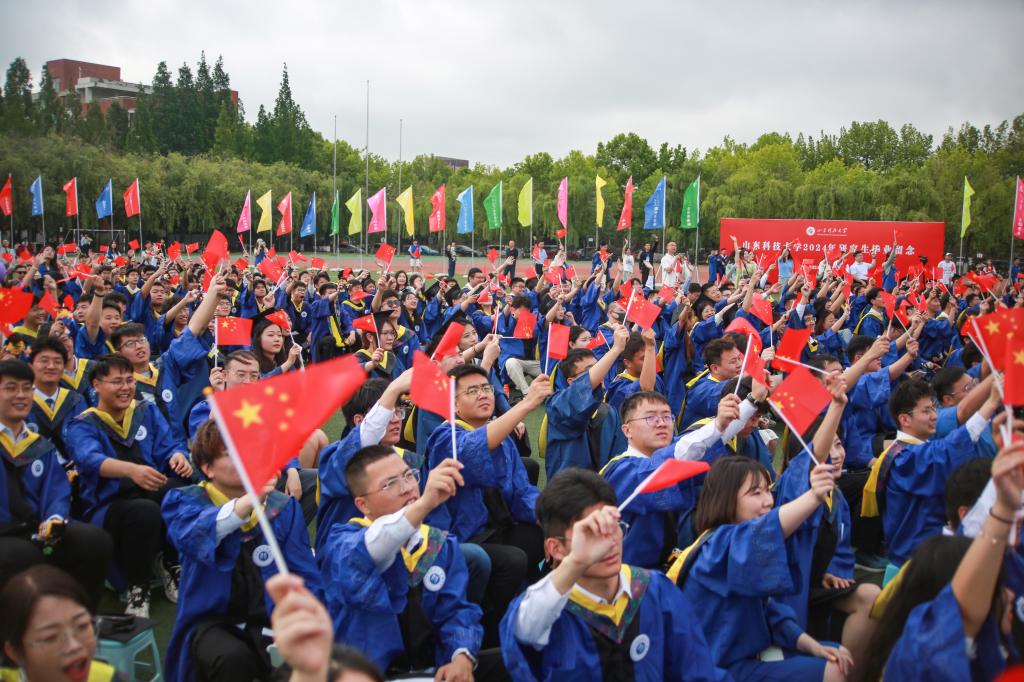 典礼开始前,10余名毕业研究生带来了歌曲快闪节目,用动情的歌声诉说着对母校的浓浓眷恋;举行了学校毕业微电影《不负别时》的首映式,特别献给2024届全体毕业研究生;艺术学院教师孟晓和天齐合唱团以合唱形式为毕业生送上祝福;全体毕业研究生通过无人机拍了一张“大合影”。典礼结束后,校领导为全体研究生举行了学位授予仪式。