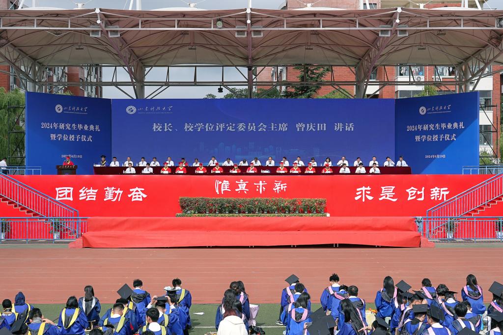 典礼由研究生院院长韩作振主持,学校相关职能部门主要负责人,导师代表、毕业生代表、学生家长代表以及2024届硕博毕业生参加了毕业典礼暨学位授予仪式。(记者:任波 摄影:孙德波 任波 尹兆阳 别永泰 责编:许浩)
