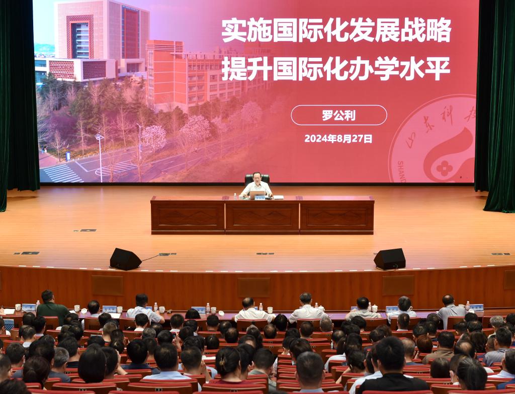 会上,罗公利以“实施国际化发展战略 提升国际化办学水平”为主题作报告。在报告中,他从“认真学习,深刻领会习近平总书记关于教育对外开放的重要要求”“提高政治站位,准确把握高等教育国际化的重大意义和丰富内涵”“保持清醒,积极应对学校国际化发展面临的挑战”“善谋善为,以高水平国际化助力学校高质量发展”四个方面进行了阐释。