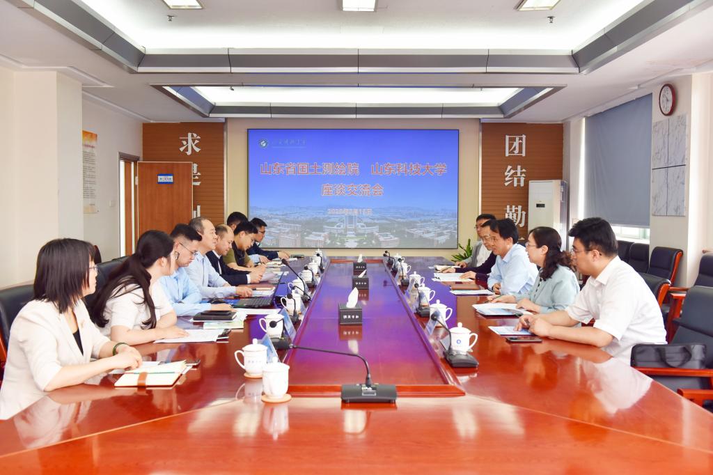 5月15日,山东省国土测绘院党委书记、院长田中原一行来校交流访问,校党委书记王君松会见了客人。校党委副书记刘明永参加会见并与田中原一行座谈。