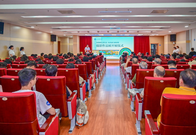 李克周在致辞中说,为贯彻落实学校第四次党代会对文化建设工作要求,学校联合新区摄影家协会举办“光影献礼党代会 向美而行新征程”摄影大赛,得到了广大摄影家协会会员、摄影爱好者的积极响应和踊跃参与,创作了许多优秀摄影作品。本次摄影展集中展出了100余幅摄影佳作,参展作品主题鲜明、内涵丰富、视角多元、构思新颖,具有很强的观赏性和感染力,这是对学校第四次党代会最真挚的献礼。