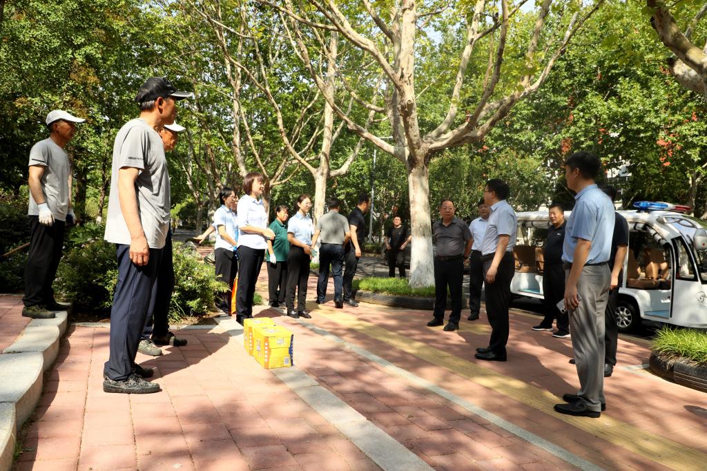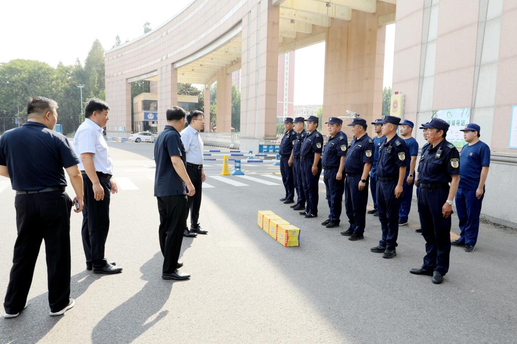 王君松先后前往南门值班室、图书馆北门西侧绿化带、学苑餐厅、学生公寓B2-4改造项目、在建B1、B5学生公寓等看望慰问在岗职工,详细询问各岗位工作情况,叮嘱他们要注意劳逸结合,做好防暑降温工作。他表示,开学在即,相关部门要进一步细化工作安排,牢记安全生产责任,积极推进各项工作保质保量完成,为新学期做好充分准备。