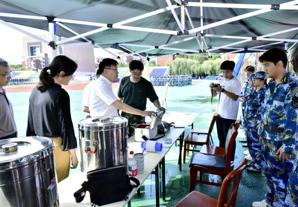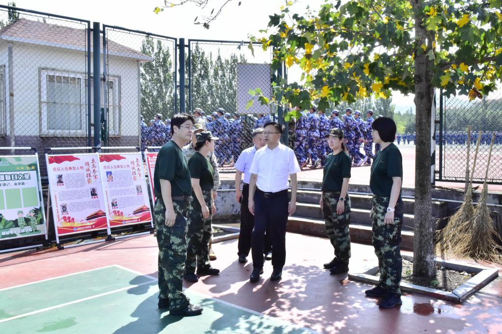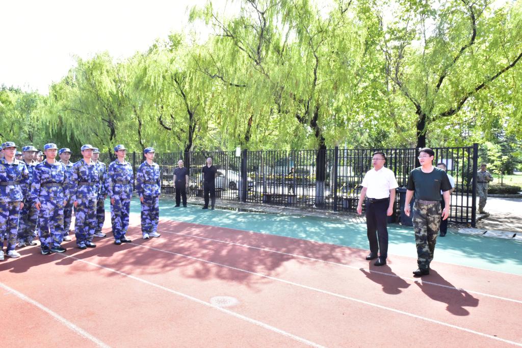 9月16日,校党委书记王君松在党委办公室(学校办公室)、武装部负责人的陪同下,看望慰问2025级军训参训学生、承训教官和学院辅导员老师。