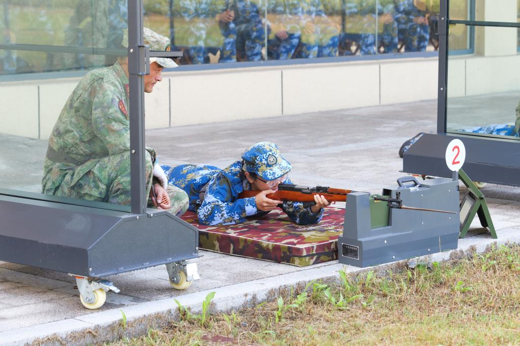 本次军训还设置了轻武器实弹射击、10公里行军拉练等特色项目,让同学们在沉浸式、实战化、互动性的体验中增强了自身军事素养。在实弹射击环节, 200名“军训之星” 在教官指导下,近距离接触武器装备,学习枪械知识、参与安全规范培训,体验了轻武器实弹射击;在10公里拉练环节,同学们在规定时间内完成负重行军、战术规避等任务,顺利通过无人机空中侦察、低姿匍匐网、战术隐蔽点等项目,在拉练中增强应变能力与团队协作精神。拉练过程中,还开展校史校情知识竞答活动,让同学们深入学习校史校情,传承科大精神。