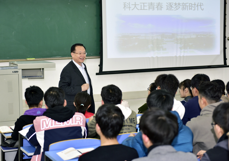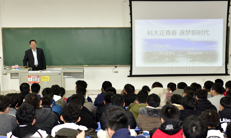 在近两个小时的讲授中,罗公利以“科大正青春,逐梦新时代”为题,提醒在座的大学生“生逢其时,重任在肩”,通过“我们处在一个什么样的时代?这个时代,给学校发展和个人成长带来什么样的机遇?同学们又该如何度过大学生活,成长成才,担当重任?”三个问题引入,旁征博引,娓娓而谈。