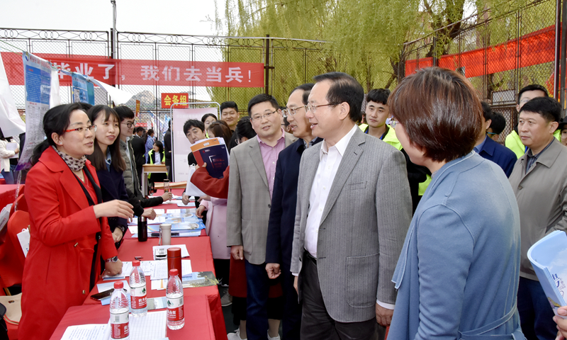 校领导罗公利、姚庆国、高建广、孙鹤汀现场指导。在招聘会现场,罗公利不时和企业代表交流“这次要招聘多少人?招的怎么样?”听到一家招聘需求为700个岗位的煤矿能源企业的现状后,他感谢用人单位对学校人才培养质量的信任,认真听取了用人单位对我校人才培养、专业建设、就业指导等方面的意见和建议。校领导在现场亲切询问毕业生签约情况,鼓励大家树立正确择业、就业观念,在广阔的市场环境中奉献聪明才智、实现自己的人生价值,同时要求学校相关部门在全方位搭建招聘平台的同时,不断创新工作方法,更好的促进学校毕业生就业。