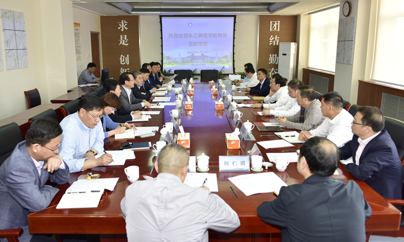5月14日,长江师范学院党委书记彭寿清、校长黄大勇带队来校交流合作,环亚在线官网党委书记罗公利、校长姚庆国会见客人并举行座谈。