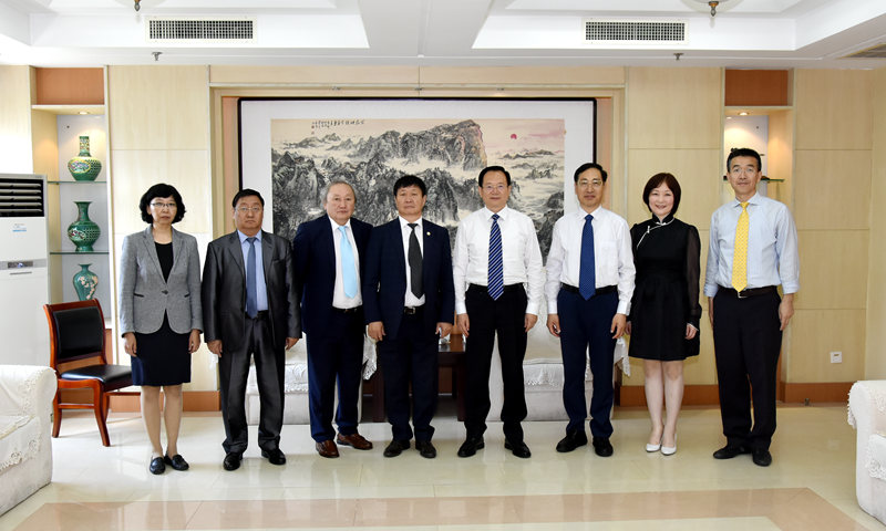 学校党委书记罗公利、副校长孙鹤汀会见了蒙古科技大学代表团一行。罗公利、孙鹤汀对恩科加格尔一行到来表示欢迎,讲到两校自2007年10月签订校际合作协议以来,在人才培养、科研合作等方面取得了可喜成绩。两校同属工科优势突出的高校,在专业设置方面有很多共通之处,合作前景广阔。罗公利谈到,近年来,我国积极推动“一带一路”沿线国家中外合作办学,国际化建设成为高校发展的重要内容之一,这为两校之间进一步合作提供了良好的外部环境和条件,期望双方进一步加强合作。恩科加格尔表示在双方合作期间,两校开展了多种形式、多层次的留学生联合培养等工作,为良好发展奠定了基础,相信两校之间的合作在“一带一路”的大背景下一定取得较好的推进,为两校间发展注入新的活力。