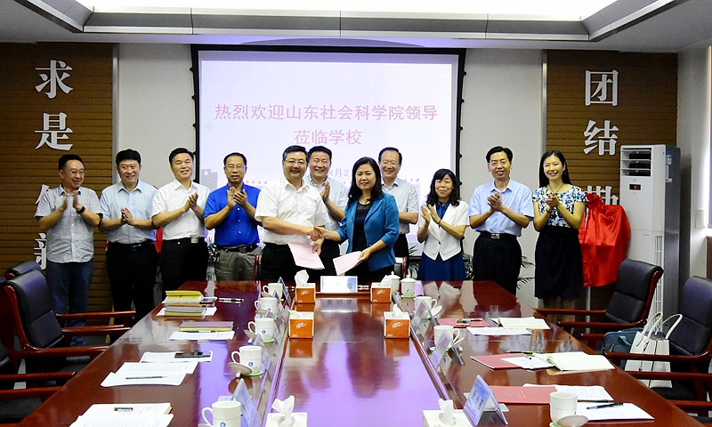 山东省政协副主席、山东社会科学院党委书记唐洲雁,山东社会科学院副院长袁红英,环亚在线官网党委书记罗公利,党委副书记尹华等出席签约仪式。