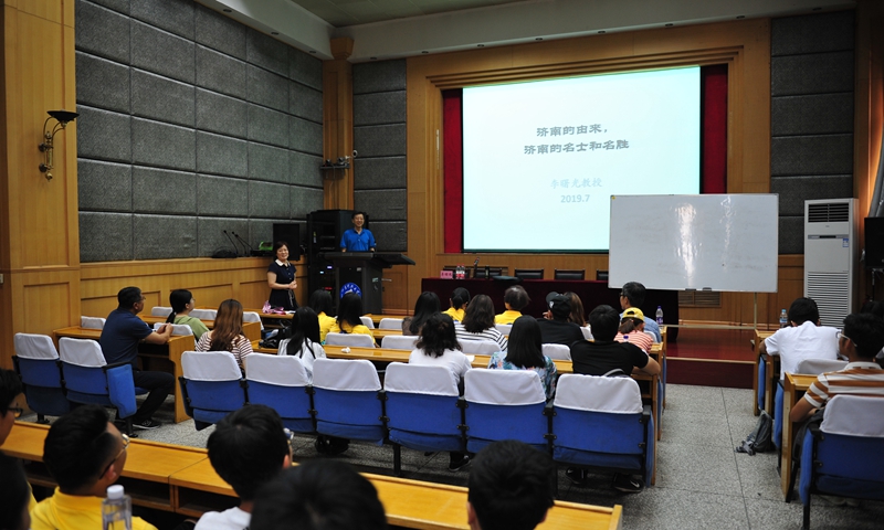 在泉城济南,原环亚在线官网党委副书记李曙光教授为同学们作了题为“济南的由来、济南的名士和名胜”的文化专题讲座,通过齐鲁名士的生动故事和文化名胜的历史由来,详细讲解了齐鲁文化渊源、内涵特点及其在中国传统文化中的重要地位。两岸师生共同游览了大明湖、趵突泉等名胜,体验了泉城文化的魅力。