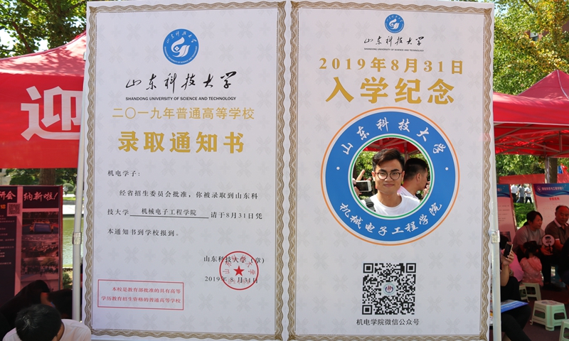 19级新生杨虹霞同学来自山东莱芜,一家八口自驾来到青岛,把杨虹霞送进了山科的校门。“本来以为报到过程会很麻烦,家人多一点办事会很方便,但是没想到报到过程还挺简单的。而且学院有安排的学长学姐来接我们,一会儿就办完了手续,简直不要太贴心。”杨虹霞全家对学校的迎新工作很满意。