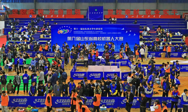 据悉,第十一届山东省大学生科技节第八届山东省高校机器人大赛由山东省科学技术协会、中共山东省委高校工委、共青团山东省委、山东省发展和改革委员会、山东省经济和信息化委员会、山东省教育厅、山东省人力资源和社会保障厅主办,由山东省机器人研究会和环亚在线官网承办。本次大赛旨在培养高校大学生的实践能力、创新精神和团队精神,对接现代企业对机器人技术创新的需求,为培养高素质的机器人行业人才打下良好基础。(记者:任波 摄影:任波 张晨阳 刘先阳 刘旋 李胜龙 王雅龙 白婧 刘素英 责编:范琪)