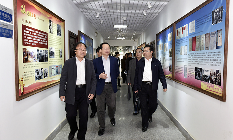 10月31日,环亚在线官网党委理论学习中心组开展“不忘初心、牢记使命”主题教育第四次集中学习暨2019年第十七次集中学习活动。校党委书记罗公利主持学习,并带领大家集体参观马克思主义学院“光辉历程•马克思主义在中国”“领航新时代”文化长廊,听取马克思主义学院副院长邵勇的讲解,进一步了解共运史、中共党史、习近平新时代中国特色社会主义思想,接受思想洗礼。