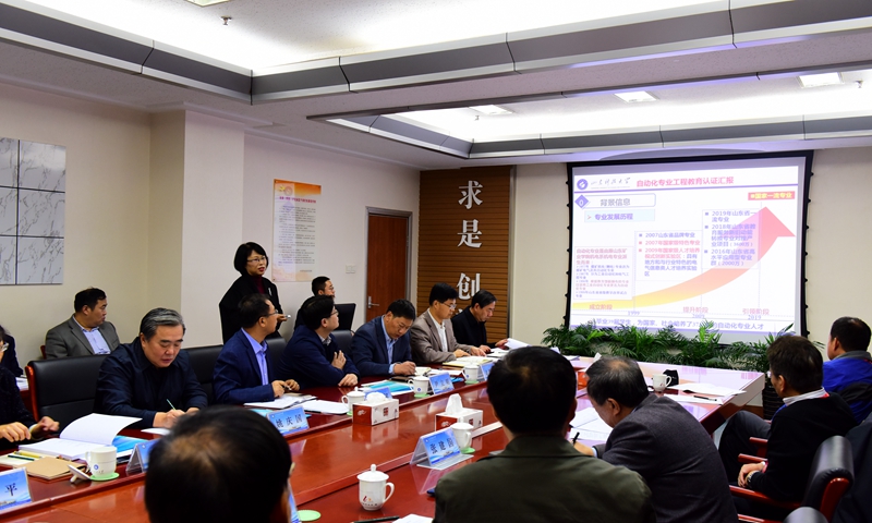 张建国主持汇报会,他介绍了工程教育专业认证的背景、目的及现场考查的相关环节。我校自动化专业负责人李玉霞向专家组从学生、培养目标、毕业要求、课程体系等7个方面进行了自评报告的补充汇报。机械设计及其自动化专业负责人韩宝坤向专家组从专业基本情况、自评准备工作、评建工作成效等6个方面作了汇报。由西安理工大学刘丁任组长的自动化专业考查专家组及由天津大学陈旭任组长的机械设计制造及其自动化专业考查专家组听取汇报,专家组成员针对汇报中的具体问题进行了询问,学校相关职能部门负责人和专业教师根据专家的提问,进行了回答和补充。
