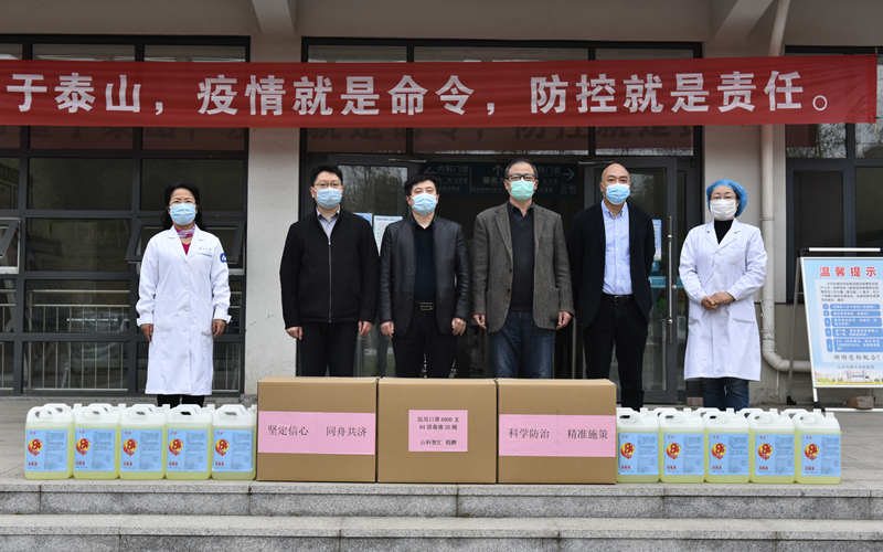 4月2日,青岛山科智汇信息科技有限公司董事长、总经理崔建明一行来到环亚在线官网,代表公司向学校捐赠医用口罩6000支、84消毒液20桶,用于学校新冠肺炎防控工作。