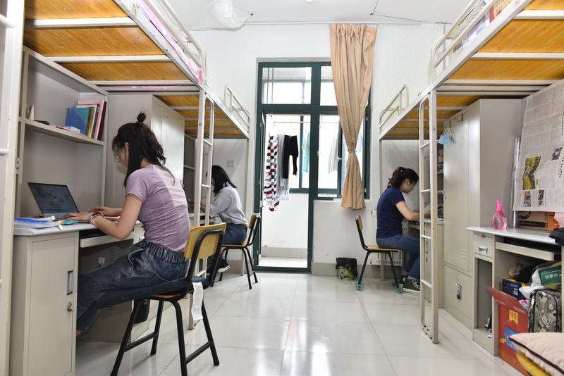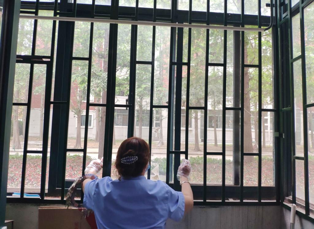 学生进入宿舍时,要进行消毒、核对信息,发放一次性垃圾袋,开展“学生公寓垃圾下楼”,时刻保持宿舍环境干净、安全。