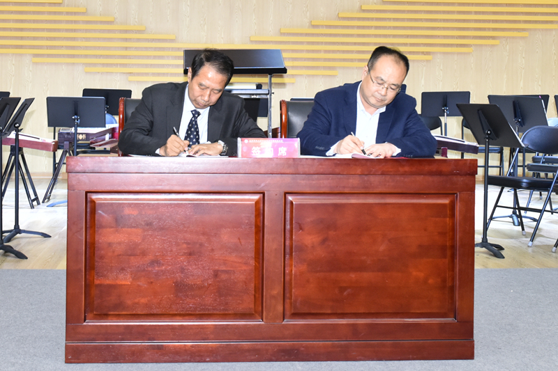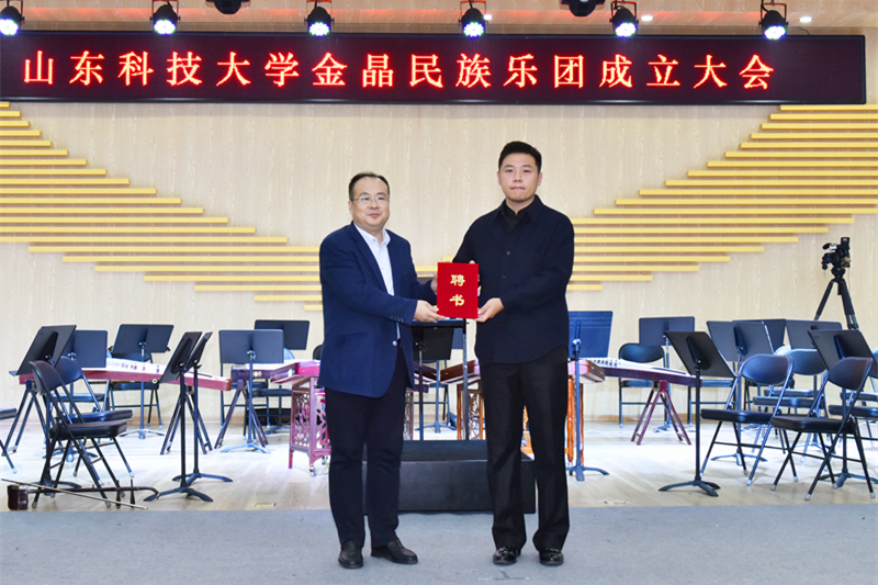 会上,尹华与刘圣佑共同为环亚在线官网金晶民族乐团揭牌。李克周与崔文传分别代表双方签署了合作协议,向艺术学院音乐系副主任薛源颁发了民族乐团指挥聘书。