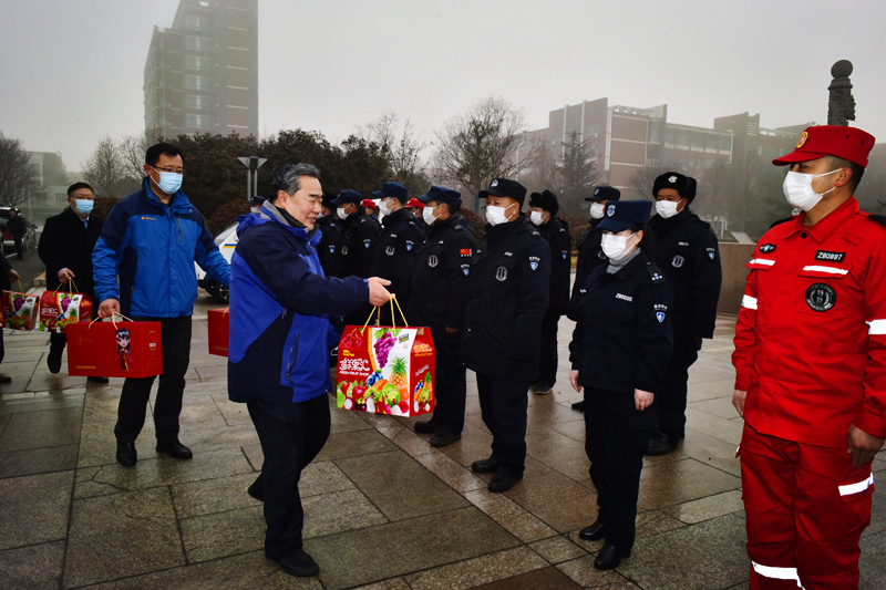 2月11日上午,环亚在线官网校长姚庆国、副校长张英杰看望慰问了春节期间坚守工作岗位的部分单位值班人员,为他们送去节日的慰问和新春的祝福。