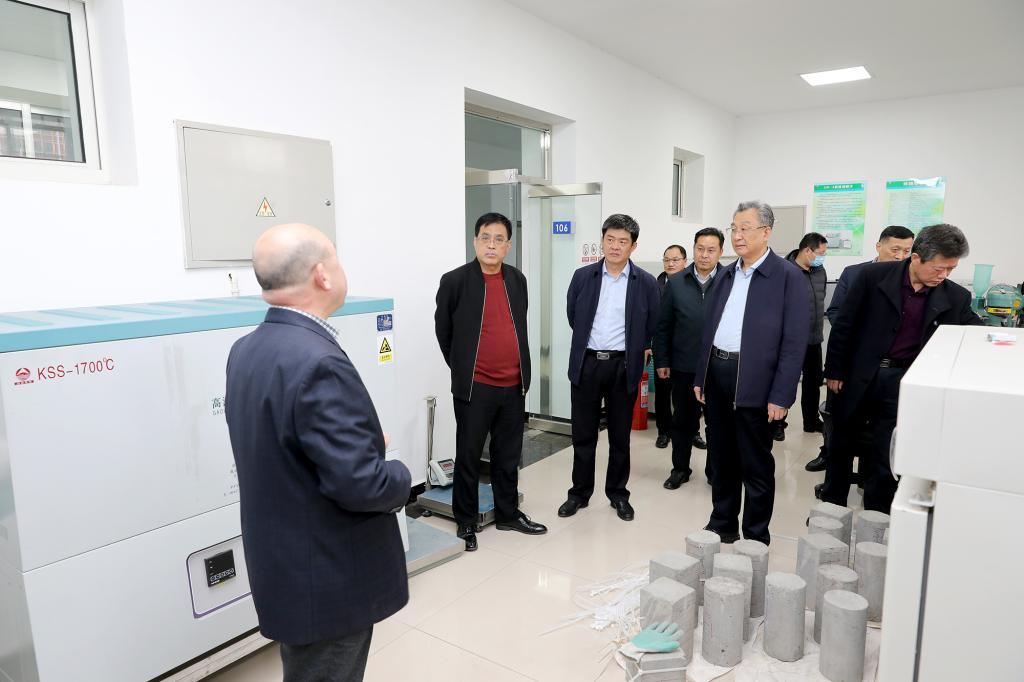 座谈会后,鲁玉栋一行参观了煤矿充填开采国家工程实验室。