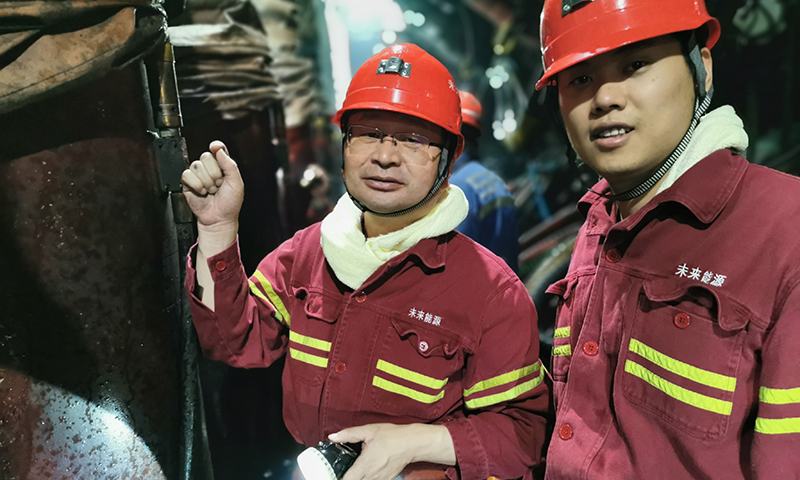程卫民教授(左一)在井下指导安全生产