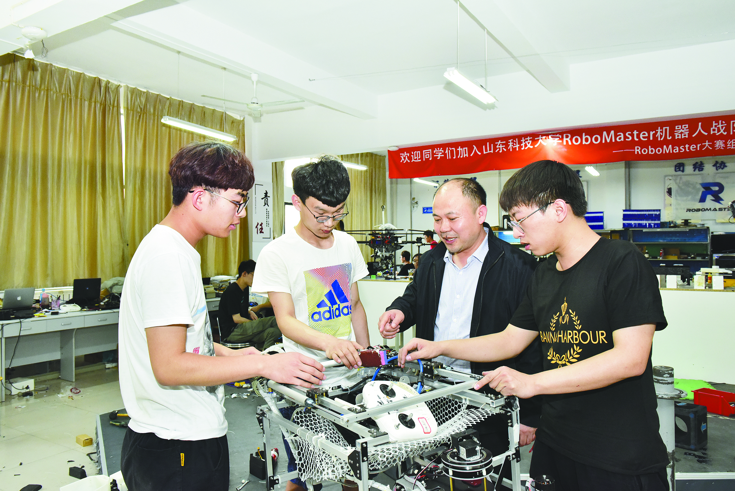 范俊峰(右二)现场了解学生参赛准备情况