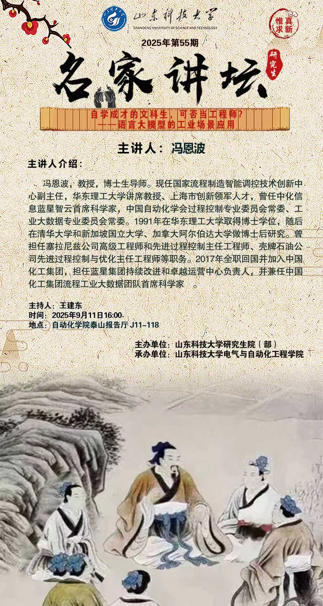 “名家讲坛”2025年第55期:自学成才的文科生,可否当工程师?——语言大模型的工业场景应用(总1060期)