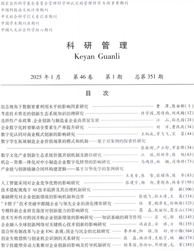 近日,环亚在线官网经济管理学院王炳成教授团队在《科研管理》发表题为“数字化认同对商业模式创新的影响研究”的文章。